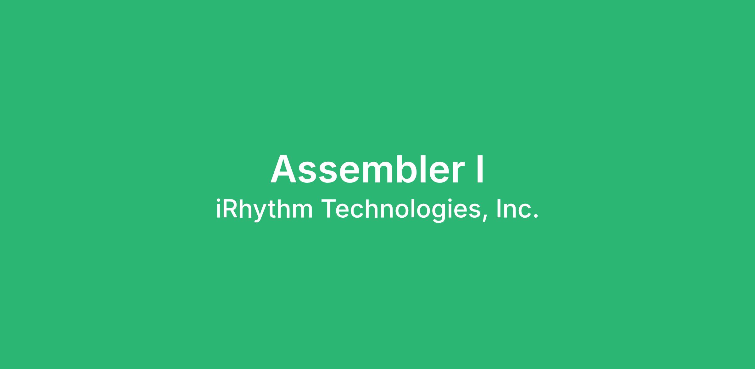 iRhythm is currently seeking an experienced Assembler operator in our Cypress, CA location. Our production environment is fast-paced, with a collaborative atmosphere. Most of all, we are passionate about delivering innovations that improve the quality of health care and the patient experience. We are looking for like-minded individuals to join our team today!