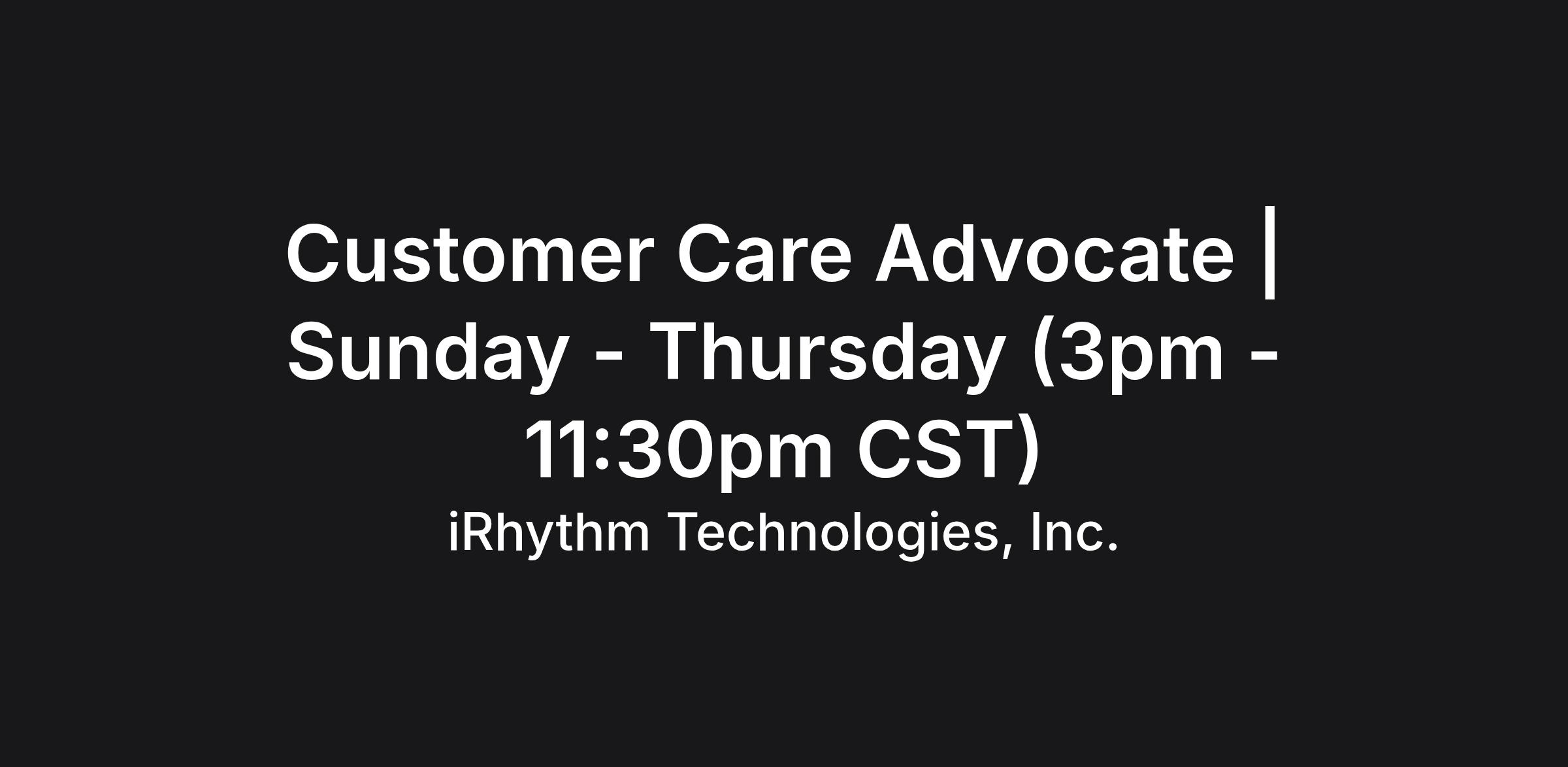 Shift: Customer Care Advocate | Sunday - Thursday (3pm - 11:30pm CST)