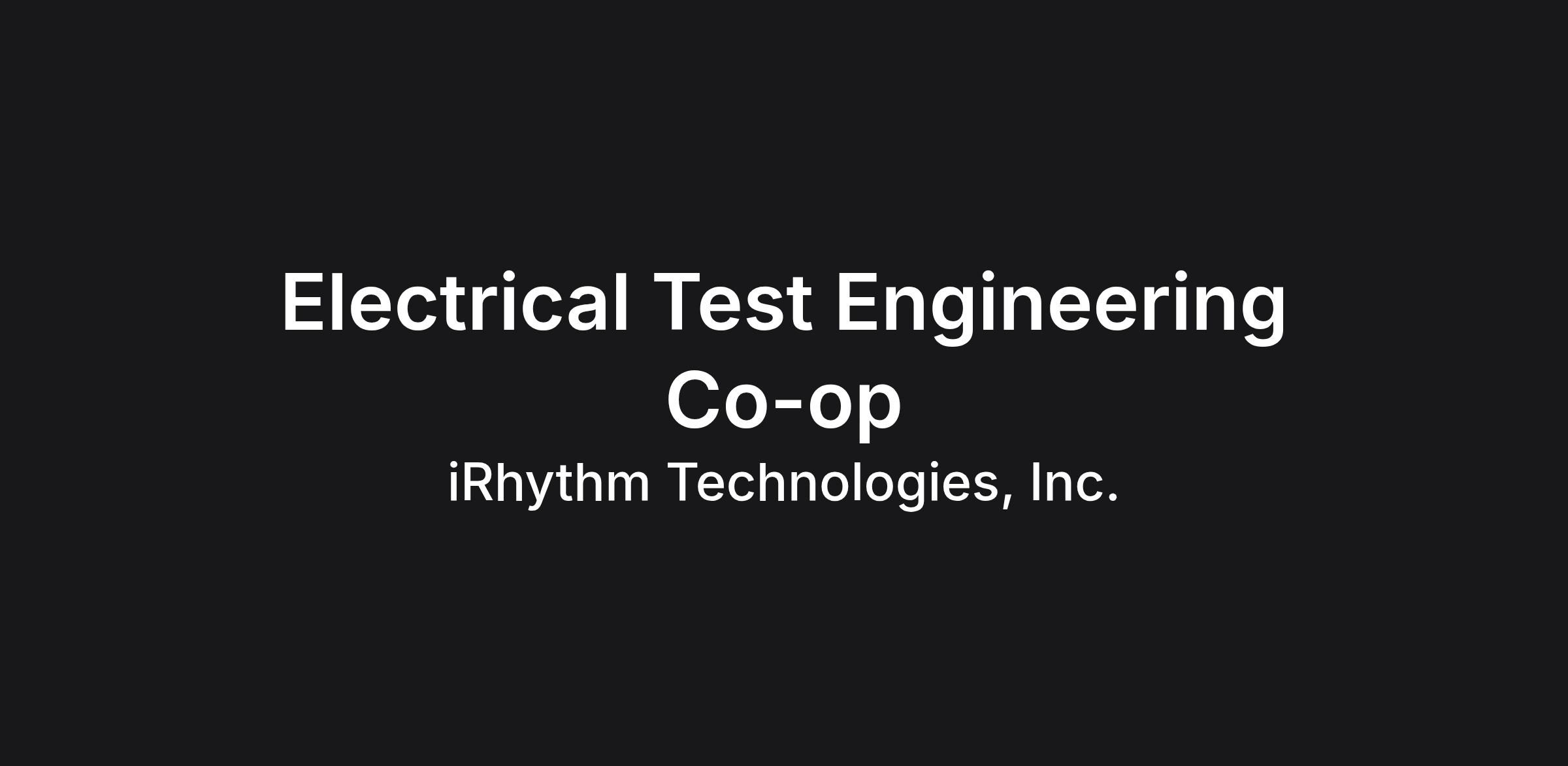 We are seeking an enthusiastic electrical engineering student or new graduate to be a part of the iRhythm Electrical Engineering team. You will gain exposure to the testing approach required to release Class 2 compliant hardware in the medical device industry. Your tasks will be to test, analyze, design, evaluate and debug circuits to support exciting additions to our product line. You have excellent technical and documentation skills, approach prototyping and debug with curiosity, interested in automation, appreciate feedback and feel satisfied once you collected data to back up your ideas.