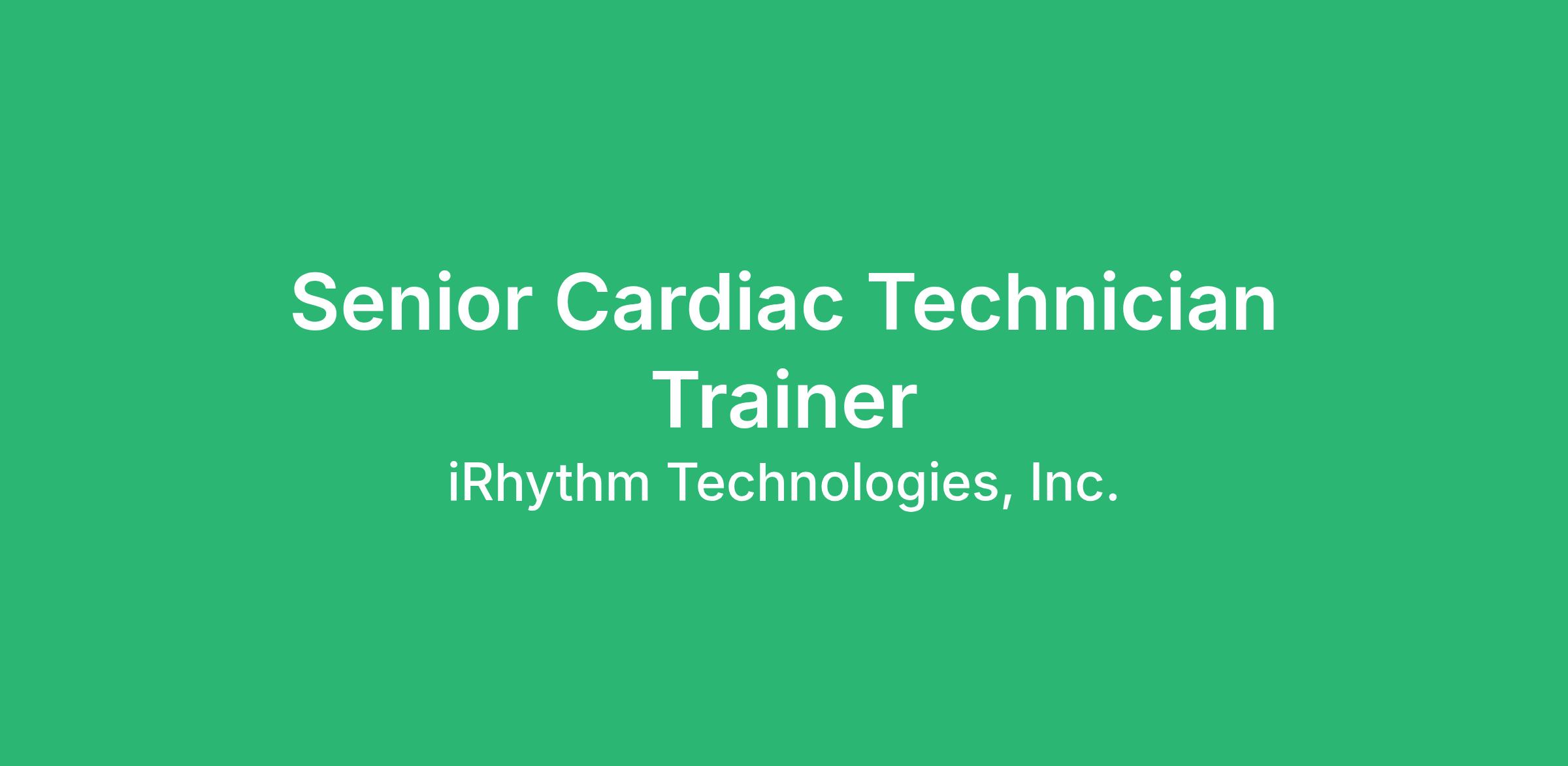 At iRhythm, you’ll have the opportunity to grow your skills and your career while impacting the lives of people around the world. iRhythm is shaping a future where everyone, everywhere can access the best possible cardiac health solutions. Every day, we collaborate, create, and constantly reimagine what’s possible. We think big and move fast, driven by our commitment to put patients first and improve lives. We need builders like you. Curious and innovative problem solvers looking for the chance to meaningfully shape the future of cardiac health, our company, and your career