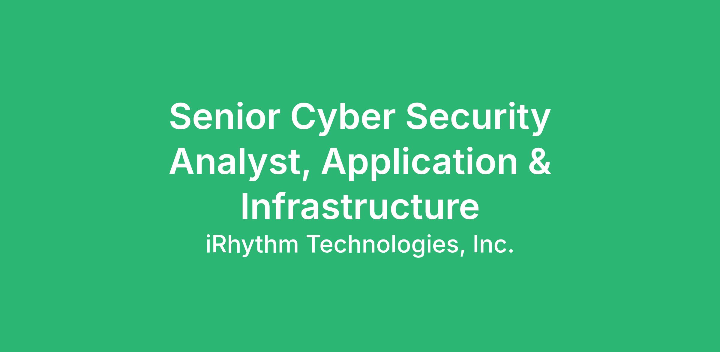 iRhythm is seeking a motivated cyber security professional that will help drive forward our focus on application security, threat modeling, and penetration testing for both infrastructure and applications. You will work closely with the Cyber Security team and interface with the Product Security team to identify, assess, and mitigate security risks across both applications and infrastructure. You will support threat modeling, vulnerability analysis, penetration testing, and other cybersecurity activities aligned with FDA, NIST, and international expectations.