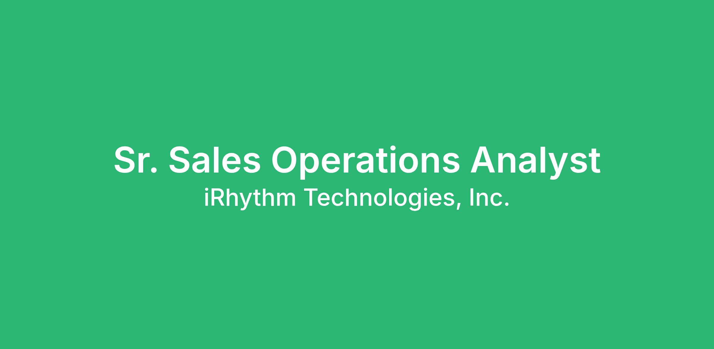 The Sales Operations organization at iRhythm is looking for a talented Sales Operations Analyst to drive strategic analytics and insights for the sales and partner management teams. You’ll be working cross-functionally to gather, organize and present large complex data sets to discover insights and turn them into actionable business recommendations.